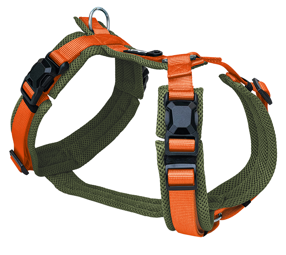 Het harnas is volledig gevoerd met ademend mesh-materiaal, licht van gewicht en comfortabel, ook tijdens lange wandelingen.