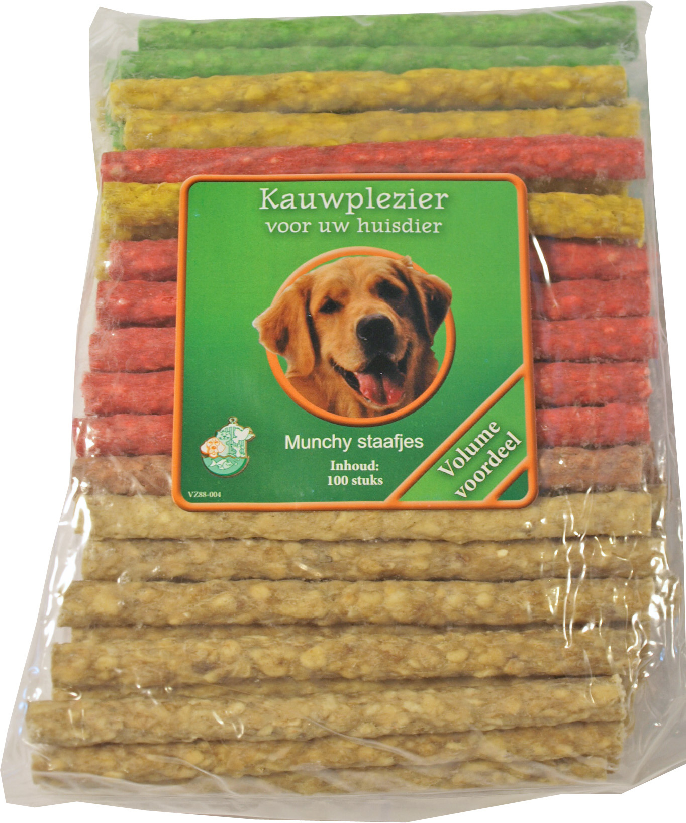 - Kleurvariaties: U kunt kiezen uit rode, naturel en assorti staafjes om aan de voorkeur van uw hond te voldoen.
